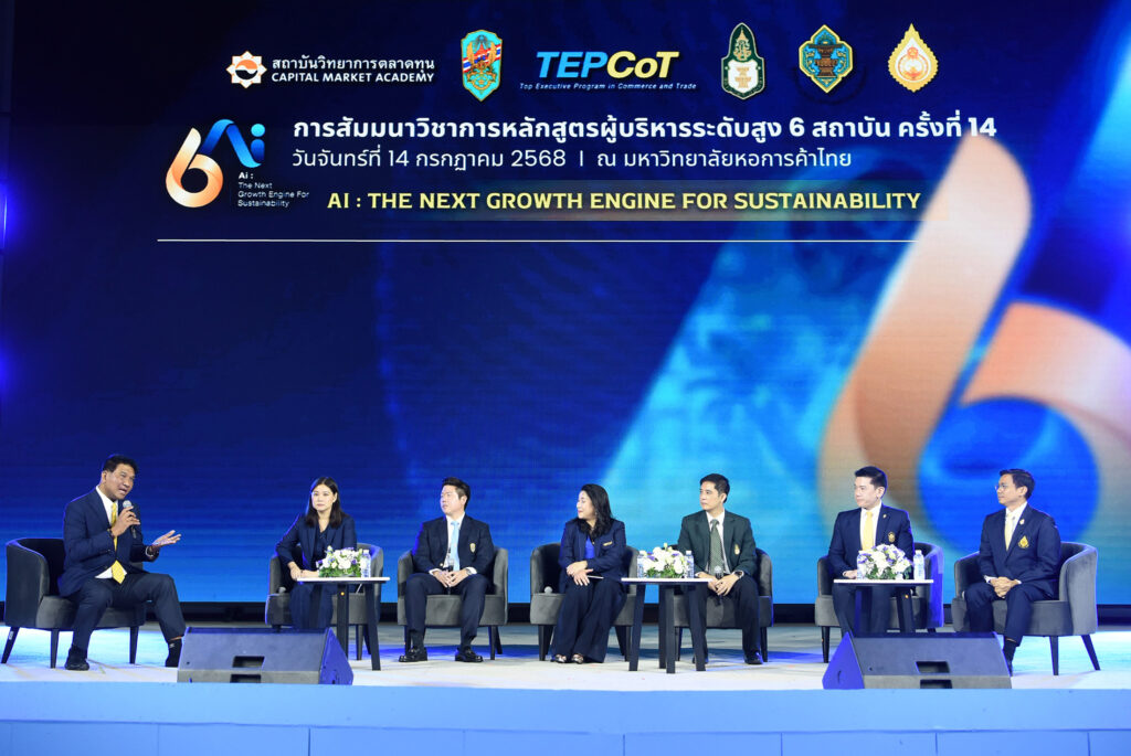สถาบันวิทยาการการค้า มหาวิทยาลัยหอการค้าไทย จัดงานสัมมนาวิชาการหลักสูตรผู้บริหารระดับสูง 6 สถาบัน ครั้งที่ 14 ภายใต้หัวข้อ “Ai: THE NEXT GROWTH ENGINE FOR SUSTAINABILITY” ในวันจันทร์ที่ 14 กรกฎาคม 2568 ณ หอประชุม มหาวิทยาลัยหอการค้าไทย โดยมีผู้แทนจากแต่ละหลักสูตรร่วมนำเสนอมุมมองเกี่ยวกับบทบาทของปัญญาประดิษฐ์ (Ai) ในการขับเคลื่อนเศรษฐกิจ สังคม และความยั่งยืนของประเทศ พร้อมเน้นย้ำถึงความสำคัญของการพัฒนา Ai อย่างมีจริยธรรมและความรับผิดชอบต่อสังคม
