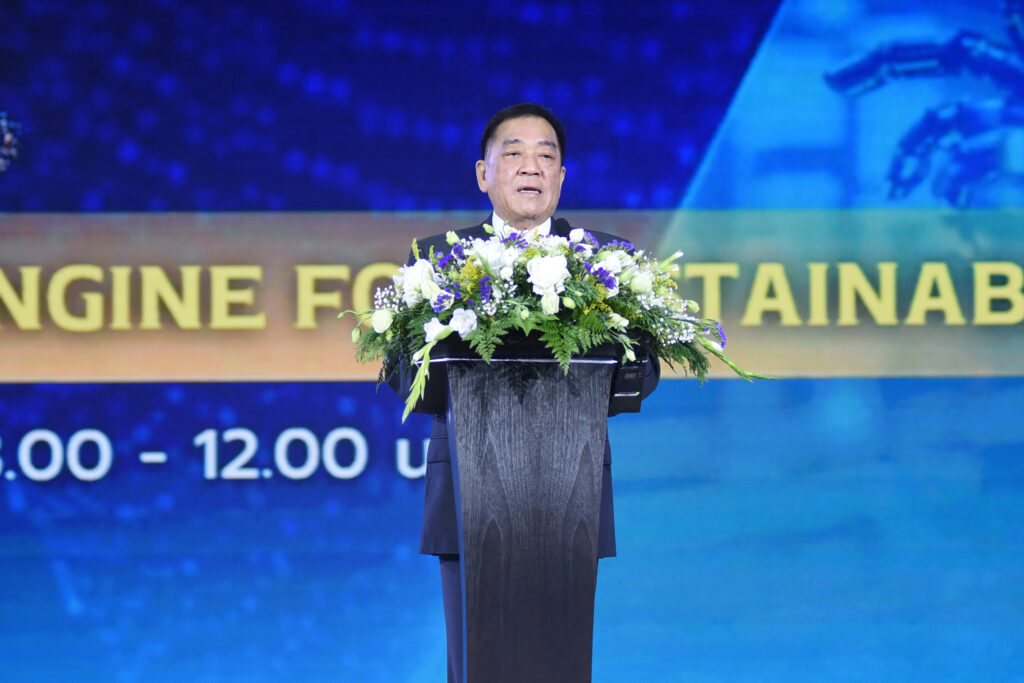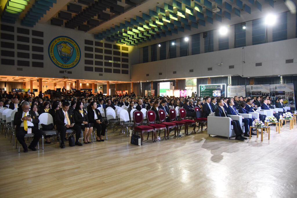 ดร.พจน์ อร่ามวัฒนานนท์ ประธานหอการค้าไทย และสภาหอการค้าแห่งประเทศไทย กล่าวปาฐกถาพิเศษภายในงานว่า “วันนี้ประเทศไทยเผชิญความท้าทายพร้อมกันถึง 3 ด้านหลัก หนึ่งคือแรงกดดันจากมาตรการภาษีและกีดกันทางการค้าจากประเทศคู่ค้า สองคือการแข่งขันรุนแรงจากสินค้าจีน ทั้งเรื่องราคาและการลงทุนแบบสวมสิทธิ์ และสามคือความเปราะบางภายในประเทศ ทั้งจากหนี้ครัวเรือนที่สูงและกำลังซื้อที่หดตัว เพื่อฝ่าฟันความท้าทายเหล่านี้ หอการค้าไทยขอเสนอแนวทาง Unlocking New Growth” ปลดล็อกการเติบโตใหม่ของประเทศไทย ผ่าน 4 มิติสำคัญ ได้แก่ มิติที่ 1 คือ Build Business Confidence & Strengthen Trade & Global Supply Chains มิติที่ 2 คือ Business Transformation: Innovation, Digital, Ai, Robot, IoT & ESG Integration เร่งการเปลี่ยนผ่านทางธุรกิจ และเศรษฐกิจยั่งยืน มิติที่ 3 Talent Development ยกระดับศักยภาพคนไทย และใช้เครือข่ายให้มีประสิทธิภาพ และมิติที่ 4 คือ Empowering SMEs & Strengthening Public-Private Partnerships ส่งเสริมสมาชิกเครือข่าย, SMEs และเสริมสร้างความร่วมมือภาครัฐ-เอกชนโดยเฉพาะเครือข่ายนานาชาติ การปลดล็อกศักยภาพใหม่ของประเทศ จะเกิดขึ้นได้จริง ก็ต่อเมื่อภาครัฐ เอกชน และภาคการศึกษา “ร่วมมือกันอย่างแท้จริง” และผู้นำจาก 6 สถาบันที่รวมตัวกันในวันนี้ก็คือ “พลังขับเคลื่อนสำคัญ” ที่จะร่วมกันกำหนดทิศทางการเติบโตใหม่ของประเทศไทย”