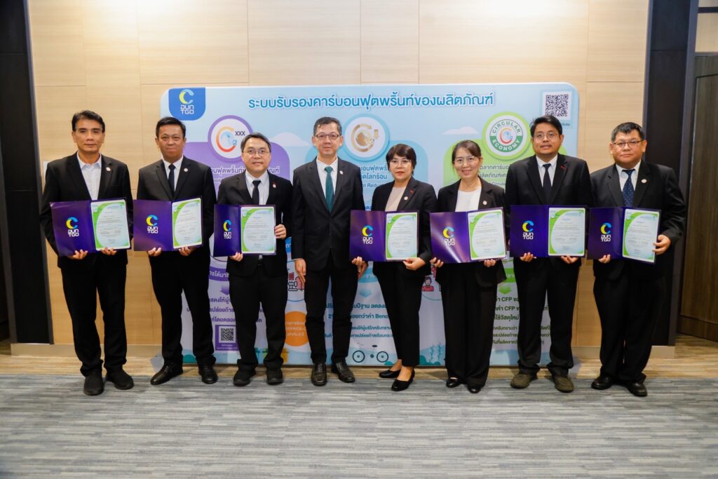 พิธีมอบประกาศนียบัตรจัดขึ้น ณ สถาบันเพื่อการยุติธรรมแห่งประเทศไทย โดยมี ดร.วิจารย์ สิมาฉายา ประธานกรรมการองค์การบริหารจัดการก๊าซเรือนกระจกเป็นประธานในพิธี ภายในงานมีการมอบเครื่องหมายรับรองฉลากคาร์บอนรวม 5 ประเภท ได้แก่ คาร์บอนฟุตพริ้นท์ของผลิตภัณฑ์ (Carbon Footprint of Product: CFP) การลดคาร์บอนฟุตพริ้นท์ของผลิตภัณฑ์ (Carbon Footprint Reduction: CFR) หรือฉลากลดโลกร้อน คาร์บอนฟุตพริ้นท์ของผลิตภัณฑ์เศรษฐกิจหมุนเวียน (Carbon Footprint of Circular Economy Product CE-CFP) คาร์บอนฟุตพริ้นท์ขององค์กร (Carbon Footprint for Organization: CFO) และคาร์บอนนิวทรัลประเภทองค์กร (Carbon Neutral Corporate: CNC) โดยมี 135 องค์กรที่ได้รับประกาศนียบัตร