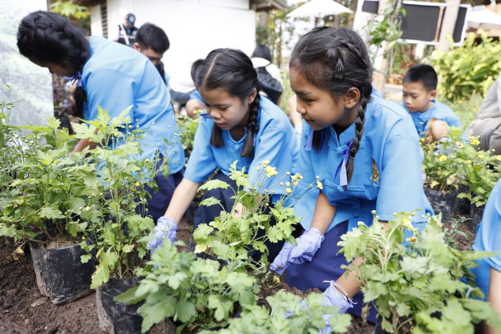 โครงการ ซีพีแรม ปันสุข” ปีที่ 7 ในครั้งนี้ ซีพีแรมได้ส่งมอบอาหารพร้อมรับประทานคุณภาพ ปลอดภัย ให้แก่เด็กนักเรียนและกลุ่มเปราะบางในชุมชน พร้อมระดมกำลังจิตอาสาจากคณะผู้บริหารและพนักงานร่วมพัฒนาพื้นที่รอบโรงเรียนและชุมชนให้มีทัศนียภาพที่สวยงามและปลอดภัย โดยกิจกรรมไฮไลต์คือการพัฒนาโครงการแปลงเกษตรในโรงเรียน ซึ่งซีพีแรมได้ถ่ายทอดองค์ความรู้ด้านการเกษตรให้แก่นักเรียนและคนในชุมชน ตั้งแต่เทคนิคการปลูกผักปลอดสาร ไปจนถึงแนวทางการสร้างรายได้เสริมจากผลผลิตทางการเกษตร นับเป็นก้าวสำคัญของการสร้างความมั่นคงทางอาหารในระดับชุมชน