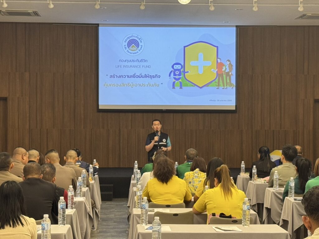 เมื่อวันที่ 30 กรกฎาคม 2568 กองทุนประกันชีวิตจัดโครงการบรรยายความรู้เกี่ยวกับบทบาท หน้าที่ และภารกิจของกองทุนฯ ให้แก่ ตัวแทน-นายหน้าประกันภัย และปฏิบัติการเชิงรุกลงพื้นที่จังหวัดอุทัยธานี เพื่อติดตามหาเจ้าของเงินกรมธรรม์ล่วงพ้นอายุความให้มารับผลประโยชน์ตามสิทธิคืนจากกองทุนประกันชีวิต โดยร่วมบูรณาการกับกองทุนประกันวินาศภัย และสำนักงานคปภ. จังหวัดอุทัยธานี ณ โรงแรมธาราฮิลล์ จังหวัดอุทัยธานี โดยนายนพพล เบี้ยวไข่มุข ผู้จัดการกองทุนประกันชีวิตได้มอบหมายให้ นายกรัณย์ทัศ รักษ์ธรรมกิจ รักษาการหัวหน้าส่วนกลยุทธ์และส่งเสริมประชาสัมพันธ์ เป็นวิทยากรถ่ายทอดความรู้เกี่ยวกับบทบาท หน้าที่ และภารกิจของกองทุนประกันชีวิต รวมถึงวิธีการตรวจสอบและใช้สิทธิในการขอรับเงินกรมธรรม์ล่วงพ้นอายุความ ให้แก่ตัวแทน-นายหน้า ที่เข้าร่วมงานในครั้งนี้ เพื่อให้ตัวแทน-นายหน้าสามารถนำความรู้ที่ได้รับไปเสริมสร้างความตระหนักรู้แก่ผู้เอาประกันภัยในวงกว้าง เป็นการสร้างความเชื่อมั่นและศรัทธาในธุรกิจประกันชีวิต และประกันวินาศภัยให้แก่ผู้เอาประกัน นำไปสู่การพัฒนาธุรกิจประกันภัยให้มีความมั่นคงและเสถียรภาพต่อไป