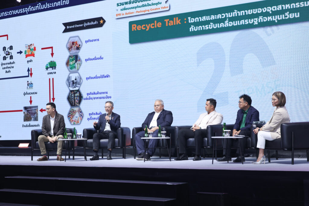 รองประธาน ส.อ.ท. และประธานสถาบันการจัดการบรรจุภัณฑ์และรีไซเคิลเพื่อสิ่งแวดล้อม หรือ TIPMSE ผู้บริหาร ผู้แทนหน่วยงานภาครัฐ ภาคเอกชน ภาคการศึกษา องค์กรอิสระ เข้าร่วม สานต่อภาคีเครือข่ายสู่การผนึกกำลังกับองค์กรต้นทาง กลางทาง และปลายทาง ที่เป็นศูนย์กลางผู้ผลิต ผู้จำหน่าย ผู้บริโภค ผู้รวบรวม และโรงงานรีไซเคิล ในรูปแบบของสมาคม กลุ่มอุตสาหกรรม เครือข่ายพันธมิตร และสภาองค์กรต่างๆ เพื่อเตรียมพร้อมในการรับหน้าที่จัดการบรรจุภัณฑ์ที่มุ่งนำกลับเข้าสู่กระบวนการรีไซเคิล รวมถึงจับมือกับองค์กรสนับสนุน อย่างภาครัฐ ภาคประชาสังคม องค์กรอิสระ องค์กรระหว่างประเทศ เพื่อระดมความคิดเห็น แบ่งปันองค์ความรู้ และทรัพยากรต่างๆ ตามบทบาทที่สอดคล้องกับหลักการขยายความรับผิดชอบของผู้ผลิต ภายใต้ความร่วมมือของ “เครือข่ายการจัดการบรรจุภัณฑ์อย่างยั่งยืน หรือ EPR Network”