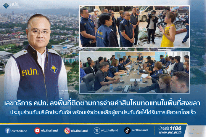 เมื่อวันที่ 7 ธันวาคม 2568 สำนักงานคณะกรรมการกำกับและส่งเสริมการประกอบธุรกิจประกันภัย (สำนักงาน คปภ.) โดย นายชูฉัตร ประมูลผล เลขาธิการ คปภ. พร้อมด้วย นางสาววสุมดี วสีนนท์ รองเลขาธิการ ด้านกำกับคนกลาง และประกันภัยภูมิภาค และคณะ ได้ลงพื้นที่จังหวัดสงขลาเพื่อประชุมร่วมกับผู้แทนบริษัทประกันภัย โดยได้ติดตามสถานการณ์อุทกภัยและกำหนดมาตรการเร่งด่วนในการช่วยเหลือผู้เอาประกันภัย หลังหลายพื้นที่ได้รับผลกระทบรุนแรงส่งผลกระทบต่อชีวิต ทรัพย์สิน และการประกอบกิจการของประชาชนจำนวนมาก