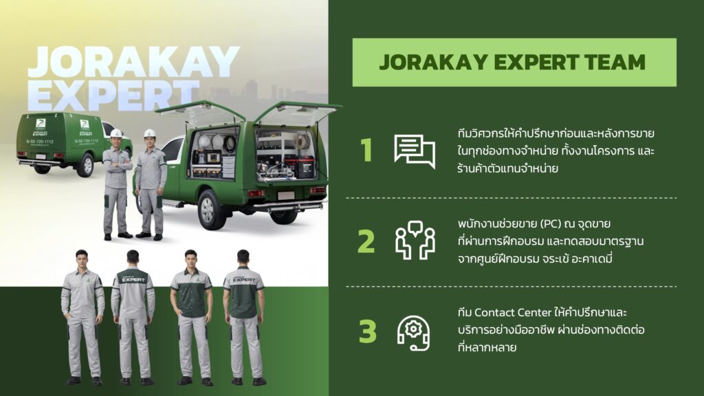 อีกหนึ่งไฮไลต์สำคัญของปีนี้ จระเข้ เปิดตัว JORAKAY EXPERT TEAM บริการดูแลงานก่อสร้างครบวงจรตั้งแต่ฐานรากถึงหลังคา โดยทีมวิศวกรผู้เชี่ยวชาญด้านวัสดุก่อสร้างที่ผ่านการฝึกอบรมมาตรฐานกว่า 100 คน มาให้คำปรึกษาและสนับสนุนทั้งช่าง ผู้รับเหมา พันธมิตรทางธุรกิจ และเจ้าของบ้าน ซึ่งเป็นการนำองค์ความรู้กว่า 3 ทศวรรษในวงการก่อสร้าง ดึงความเชี่ยวชาญ (Expertise) ใน 6 มิติ มาปั้นเป็นบริการให้พันธมิตรและลูกค้าได้แก่ 1. PRODUCT ในฐานะผู้เชี่ยวชาญด้านการวิจัยและพัฒนาผลิตภัณฑ์ที่ได้รับการรับรองระดับประเทศและสากล พร้อมสร้างมาตรฐานให้วงการก่อสร้างอยู่เสมอ 2. INNOVATION จระเข้ โดดเด่นด้วยการผสานเทคโนโลยีที่ช่วยยกระดับผลิตภัณฑ์เพื่อสร้างคุณค่าและผลกระทบเชิงบวกแก่สังคม อาทิ เทคโนโลยีระดับโลก “Microban” เพื่อยับยั้งราดำ, Dustless Technology กาวซีเมนต์ลดการฟุ้งกระจายของฝุ่นได้ถึง 80% และ JORAKAY Road Fix Express ปูนผสมสำเร็จสำหรับซ่อมพื้นผิวถนนคอนกรีตชนิดบาง เซตตัวเร็วพร้อมเปิดพื้นที่หลังซ่อมได้ภายใน 6 ชั่วโมง 3. INTERNATIONAL ในฐานะผู้นำนวัตกรรมก่อสร้างที่ประสบความสำเร็จในการขยายธุรกิจสู่ตลาดต่างประเทศได้อย่างมั่นคง 4. CHANNEL ความเชี่ยวชาญด้านช่องทางจัดจำหน่ายสินค้าที่หลากหลายตอบโจทย์ลูกค้า ทั้งโมเดิร์นเทรด, JORAKAY SHOP และช่องทางออนไลน์ 5. ACADEMY ศูนย์ฝึกอบรมและศูนย์ทดสอบมาตรฐานฝีมือแรงงาน จระเข้ อะคาเดมี่ (JORAKAY Academy Training Center) การถ่ายทอดความเชี่ยวชาญสู่พัฒนาศักยภาพของบุคลากรในวงการก่อสร้าง และ 6. CONTACT CENTER จระเข้ ให้ความสำคัญกับการรับฟังความคิดเห็นของลูกค้าผ่านทุกช่องทางการติดต่อเพื่อนำมาปรับปรุงและต่อยอดเป็นบริการใหม่ๆ ที่อำนวยความสะดวกให้ลูกค้าอย่างต่อเนื่อง ให้งานก่อสร้างออกมาสมบูรณ์ถูกต้องและได้มาตรฐาน โดยสำหรับโครงการขนาดใหญ่ จระเข้มีทีมวิศวกรสนับสนุนก่อนและหลังการขาย