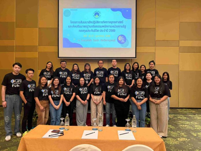 กองทุนประกันชีวิตจัดโครงการสัมมนาเชิงปฏิบัติการทิศทางยุทธศาสตร์และส่งเสริมมาตรฐานจริยธรรมพนักงานหน่วยงานรัฐ กองทุนประกันชีวิต ประจำปี 2569 ในระหว่างวันที่ 26-27 กุมภาพันธ์ 2569 บรรยายโดย นายนพพล เบี้ยวไข่มุข รักษาการผู้จัดการกองทุนประกันชีวิต ร่วมด้วยนางสาวนฤมล พลเยี่ยม เจ้าหน้าที่อาวุโส 1 งานยุทธศาสตร์และบริหารความเสี่ยง ณ โรงแรมไมด้า รีสอร์ท จังหวัดกาญจนบุรี เพื่อสร้างความเข้าใจเกี่ยวกับการดำเนินงานแก่บุคลากรของกองทุนประกันชีวิตให้เป็นไปในทิศทางเดียวกัน พร้อมทั้งร่วมกันผลักดันให้แผนงานของกองทุนฯ บรรลุวัตถุประสงค์และเป้าหมายที่กำหนดไว้ตามแผนปฏิบัติการกองทุนประกันชีวิต ประจำปี 2569 รวมถึงเสริมสร้างความสัมพันธ์ในการทำงานร่วมกันเป็นทีม และสร้างวัฒนธรรมองค์กรแก่บุคลากรตามมาตรฐานจริยธรรม เพิ่มศักยภาพในการทำงานร่วมกันภายในองค์กรให้เกิดประสิทธิภาพมากยิ่งขึ้นโดยยึดหลักธรรมภิบาลที่ดีและการครองตนตามมาตรฐานจริยธรรมพนักงานหน่วยงานรัฐ