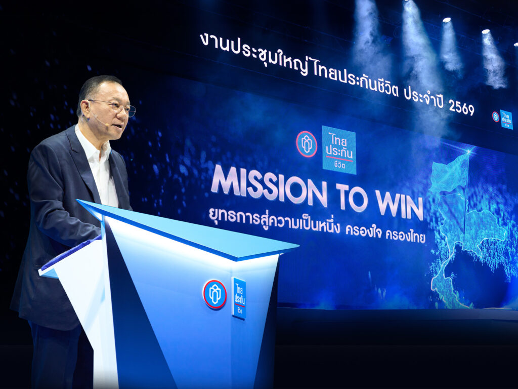 พลเอกวินัย ภัททิยกุล ประธานกรรมการ บริษัท ไทยประกันชีวิต จํากัด (มหาชน) และ นายฮิเดกิ นากาจิมะ Director, President, Representative Executive Officer, and Group CEO บริษัท เมจิ ยาสุดะ ไลฟ์ อินชัวรันส์ ร่วมเปิดงานประชุมใหญ่ ประจําปี 2569 ภายใต้แนวคิด “MISSION TO WIN” ยุทธการสู่ความเป็นหนึ่ง ครองใจ ครองไทย เพื่อประกาศนโยบายก้าวสู่ความเป็นหนึ่งของไทยประกันชีวิต พร้อมมอบเป้าหมายการดําเนินงานให้แก่บุคลากรฝ่ายขายทั่วประเทศ โดยมีคณะผู้บริหารระดับสูง จาก บมจ.ไทยประกันชีวิต และบริษัท เมจิ ยาสุดะ ไลฟ์ อินชัวรันส์ ร่วมงาน ณ ศูนย์แสดงสินค้าอิมแพ็ค เมืองทองธานี