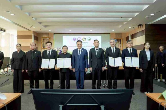 ยุคที่ 5.0 : เป็นการต่อยอดความสำเร็จในฤดูการผลิตปี 2568/2569 นี้ ซึ่งเป็นก้าวต่อไปของอุตสาหกรรมอ้อยและน้ำตาลทรายแบบที่เป็นมิตรกับสิ่งแวดล้อม กระทรวงอุตสาหกรรมได้มีแนวคิดผลักดันมาตรการจ่ายเงินช่วยเหลือตามประสิทธิภาพ และการใช้เทคโนโลยีภาพถ่ายดาวเทียม ตลอดจนการประยุกต์ใช้ข้อมูลด้านอุตุนิยมวิทยา จากแรงกดอากาศและทิศทางลม เพื่อควบคุมการเผาอ้อยได้อย่างมีประสิทธิภาพบนพื้นฐานของการควบคุมการเผาในเชิงพื้นที่ และการประยุกต์ใช้ข้อมูลด้านวิทยาศาสตร์และเทคโนโลยี และเทคโนโลยีดิจิทัล ดังนั้น กระทรวงอุตสาหกรรม จึงได้มอบหมายให้สำนักงานคณะกรรมอ้อยและน้ำตาลทราย (สอน.) เดินหน้าขับเคลื่อนมาตรการเพิ่มอ้อยตัดสดลดการเผา สะท้อนให้เห็นถึงความร่วมมือจากทั้งเกษตรกร โรงงานน้ำตาล และหน่วยงานทุกภาคส่วน โดยได้ยกระดับความร่วมมือกับหน่วยงานภาครัฐหลักอย่างต่อเนื่อง โดยเฉพาะอย่างยิ่ง กระทรวงอุตสาหกรรม จึงร่วมกับกระทรวงมหาดไทย (มท.) กระทรวงการอุดมศึกษา วิทยาศาสตร์ วิจัยและนวัตกรรม (อว.) และกระทรวงดิจิทัลเพื่อเศรษฐกิจและสังคม (ดีอี) ซึ่งเป็นที่มาของลงนามความร่วมมือว่าด้วยการควบคุมการเผาอ้อยและพืชไร่ เพื่อป้องกันปัญหาฝุ่นละอองขนาดเล็ก (PM 2.5) ในวันนี้ โดยมีเป้าหมายเพื่อบูรณาการความร่วมมือระหว่างหน่วยงานภาครัฐในการแก้ไขปัญหาการเผาอ้อยในช่วงฤดูการผลิตปี 2568/2569 ถึงฤดูการผลิตปี 2569/2570 โดยให้ความสำคัญกับการลดการเผาอ้อยทั้งก่อนและหลังการเก็บเกี่ยว ควบคู่กับการลดผลกระทบจากฝุ่น PM 2.5 ผ่านการแลกเปลี่ยนองค์ความรู้ ความเชี่ยวชาญ เทคโนโลยี และเครือข่ายการปฏิบัติงานของแต่ละหน่วยงาน เพื่อให้เกิดผลลัพธ์และต่อยอดในระยะยาว ทั้งด้านเศรษฐกิจ สังคม และสิ่งแวดล้อม