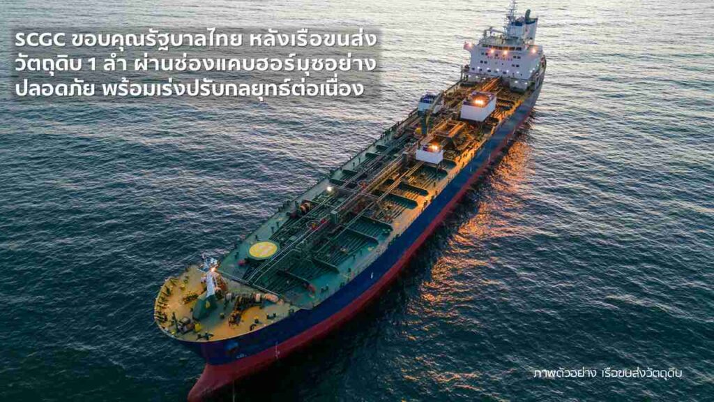 กรุงเทพฯ – 20 เมษายน 2569 เอสซีจี เคมิคอลส์ หรือ SCGC โดยนายศักดิ์ชัย ปฏิภาณปรีชาวุฒิ ประธานเจ้าหน้าที่บริหารและกรรมการผู้จัดการใหญ่ เผยถึงสถานการณ์การจัดหาวัตถุดิบเพื่อผลิตเม็ดพลาสติก ล่าสุดเรือขนส่งวัตถุดิบ (แนฟทา) จำนวน 1 ลำ จากทั้งหมด 2 ลำ ซึ่งติดค้างอยู่บริเวณช่องแคบฮอร์มุซได้เดินทางออกมาอย่างปลอดภัยเป็นที่เรียบร้อยภายหลังจากการเจรจาของรัฐบาลไทย ซึ่งบริษัทฯ ขอขอบคุณกระทรวงการต่างประเทศ สถานทูตอิหร่านประจำประเทศไทย รัฐบาลสาธารณรัฐอิสลามอิหร่าน และรัฐสุลต่านโอมาน รวมทั้งภาคส่วนต่าง ๆ ที่เกี่ยวข้องเป็นอย่างสูงสำหรับความช่วยเหลือและการสนับสนุนอย่างดียิ่งในครั้งนี้ สำหรับเรือขนส่งวัตถุดิบลำที่ 2 นั้น ขณะนี้ บริษัทเดินเรือกำลังประเมินสถานการณ์ เนื่องจากในพื้นที่ยังมีความอ่อนไหว ทั้งนี้ หวังว่าช่องแคบฮอร์มุซจะสามารถเปิดได้อย่างต่อเนื่องในระยะยาว