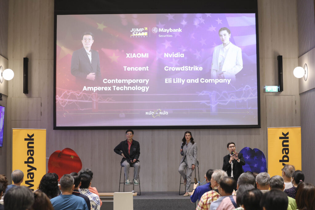บริษัทหลักทรัพย์ เมย์แบงก์ (ประเทศไทย) จำกัด (มหาชน) ร่วมกับ สมาคมนักลงทุนประเทศไทย จัดสัมมนาสุดเอ็กซ์คลูซีฟสำหรับลูกค้าเมย์แบงก์และผู้สนใจ ร่วมวิเคราะห์โอกาสการลงทุนบนเวทีโลก พร้อมเปิดมุมมองเชิงกลยุทธ์แบบ “หมัดต่อหมัด” เทียบความน่าสนใจของหุ้นสหรัฐและหุ้นจีน บนสมรภูมิการแข่งขันระหว่างสองมหาอำนาจทางเศรษฐกิจอย่างจีนและสหรัฐ ภายในงาน พบกับ 2 ผู้เชี่ยวชาญชั้นนำ “เซียนมี่” ทิวา ชินธาดาพงศ์ นายกสมาคมนักลงทุนประเทศไทย เจ้าของพอร์ตการลงทุนมูลค่าหลักพันล้านบาท และ ธนัชชา เชษฐโชติศักดิ์ นักวิเคราะห์หุ้นต่างประเทศจากเมย์แบงก์ ที่จะมาแบ่งปันมุมมองเชิงลึกในแต่ละธุรกิจศักยภาพ เพื่อช่วยให้นักลงทุนมองเห็นโอกาสและสร้างความมั่นใจ ในโลกของการลงทุนที่เต็มไปด้วยไม่แน่นอน