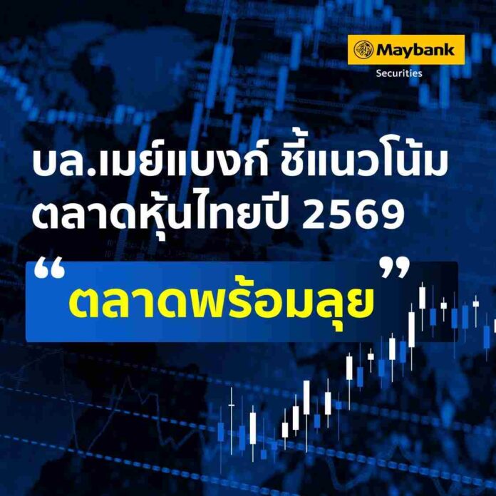 บล.เมย์แบงก์ เปิดบทวิเคราะห์แนวโน้มตลาดหุ้นไทยปี 2569 ประเมินว่าตลาดมีความพร้อมในการเดินหน้า แม้จะยังเผชิญความไม่แน่นอนในระยะสั้น โดยยังคงเป้าหมายดัชนีตลาดหลักทรัพย์แห่งประเทศไทย (SET Index) สิ้นปี 2569 ที่ระดับ 1,370 จุด สะท้อนมุมมองเชิงบวกต่อศักยภาพการฟื้นตัวของตลาดไทยในระยะถัดไป