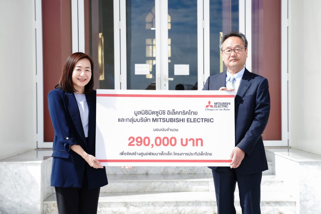 มูลนิธิมิตซูบิชิ อิเล็คทริคไทย นำโดย นายชินจิ เทะระทานิ รองประธานกรรมการ พร้อมด้วยผู้แทนจากมูลนิธิฯ มอบถวายเงินสนับสนุนจำนวน 290,000 บาท แด่ พระวชิรวรคุณ (เสริมพร ธมฺมวโร) ประธานกรรมการมูลนิธิประทีปเด็กไทย หลวงพ่อวิริยังค์ สิรินฺธโร เพื่อสมทบทุนการสร้างศูนย์พัฒนาเด็กเล็กให้ครอบคลุมพื้นที่ทั่วประเทศไทย ตามวัตถุประสงค์หลักของ “โครงการประทีปเด็กไทย” ต่อเนื่องเป็นปีที่ 9 ณ วัดศรีรัตนธรรมาราม จังหวัดสมุทรปราการ