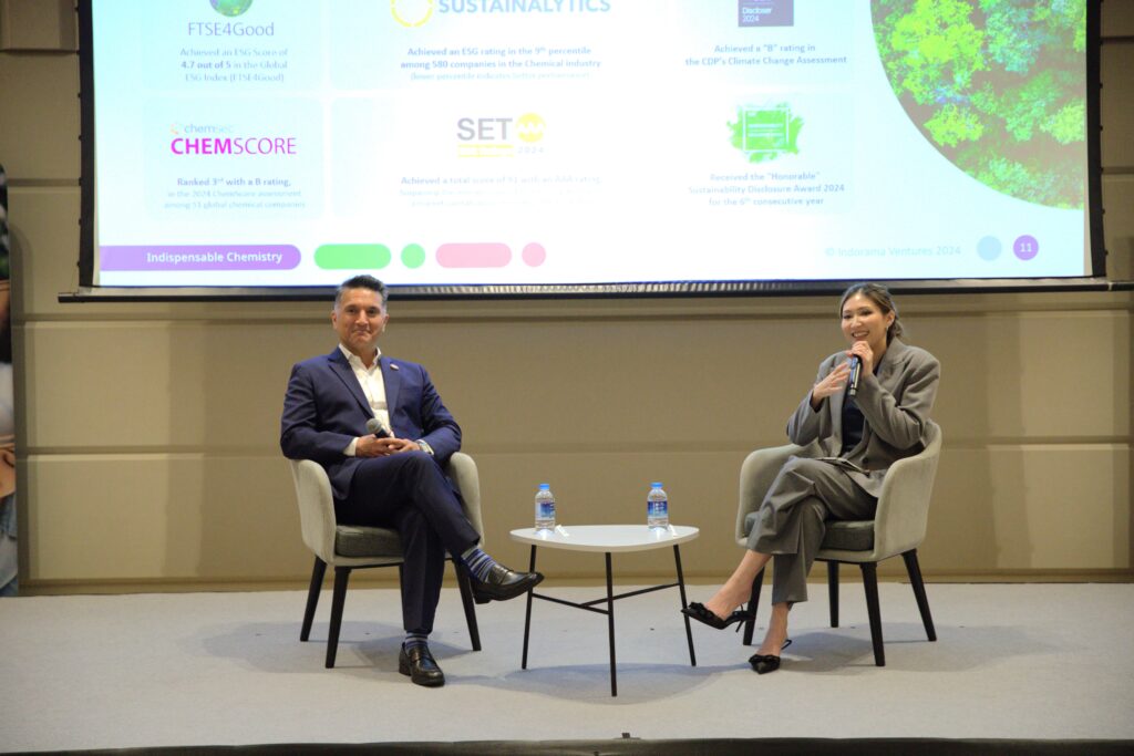นอกจากนี้ อินโดรามา เวนเจอร์ส ยังได้จัดงานแถลงข่าว โดยมี ดร.แอนโทนี วาตานาเบ ประธานเจ้าหน้าที่บริหารด้านความยั่งยืน ร่วมแบ่งปันความก้าวหน้าของบริษัทฯ ด้านต้นทุนทางปัญญา โครงการวิจัยและพัฒนาหลากหลายโครงการ การลงทุนในโซลูชันที่ยั่งยืนและเทคโนโลยีขั้นสูง รวมถึงการพัฒนากลุ่มผลิตภัณฑ์โดยใช้กรอบการจำแนกผลิตภัณฑ์เพื่อความยั่งยืน (Sustainability Product Classification – SPC) ด้วยการลงทุนกว่า 33 ล้านเหรียญสหรัฐในงานวิจัยและพัฒนา และการเปิดตัวผลิตภัณฑ์ใหม่จำนวน 483 รายการ อินโดรามา เวนเจอร์ส ยังคงขยายกลุ่มผลิตภัณฑ์โซลูชันที่มีคาร์บอนต่ำ สามารถนำไปรีไซเคิลได้ และชีวภาพ ครอบคลุมทั้ง PET เส้นใย และเคมีภัณฑ์ชนิดพิเศษ เพื่อส่งมอบการสร้างคุณค่าและความได้เปรียบในการแข่งขันในระยะยาว ซึ่งสอดคล้องกับกลยุทธ์ธุรกิจ IVL 2.0 ของบริษัทฯ ที่มุ่งเสริมความแข็งแกร่งทางการตลาดในกลุ่มผลิตภัณฑ์มูลค่าเพิ่มสูง