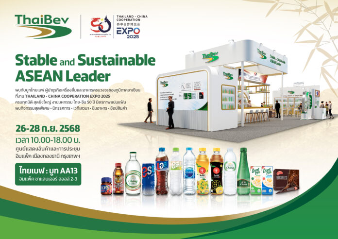 บริษัท ไทยเบฟเวอเรจ จำกัด (มหาชน) (“ไทยเบฟ”) ร่วมจัดแสดงสินค้าในงาน Thailand-China Cooperation Expo 2025 ในโอกาสเฉลิมฉลองวาระครบรอบ 50 ปี การสถาปนาความสัมพันธ์ทางการทูตระหว่างระหว่างราชอาณาจักรไทยกับสาธารณรัฐประชาชนจีน และร่วมเป็นส่วนหนึ่งในการผลักดันประเทศไทยสู่การเป็นศูนย์กลางห่วงโซ่อุปทานโลก (Global Supply Chain Hub) และขยายความร่วมมือด้านการค้า การลงทุนในทุกมิติ ภายในบูทไทยเบฟ พบกับกองทัพผลิตภัณฑ์เครื่องดื่ม และอาหาร พร้อมนวัตกรรมผลิตภัณฑ์ที่เป็นมิตรกับสิ่งแวดล้อมจาก 4 กลุ่มธุรกิจ ได้แก่ กลุ่มธุรกิจสุรา กลุ่มธุรกิจเบียร์ กลุ่มธุรกิจเครื่องดื่มไม่มีแอลกอฮอล์ และกลุ่มธุรกิจอาหาร มาให้คุณได้สัมผัสประสบการณ์สุดพิเศษตอบโจทย์ความต้องการผู้บริโภคทุกช่วงวัย พร้อมทั้งเปิดพื้นที่ในการเจรจาทางธุรกิจเพื่อขยายเครือข่าย ตอกย้ำศักยภาพความแข็งแกร่งผู้นำธุรกิจเครื่องดื่ม และอาหารครบวงจรที่มั่นคง และยั่งยืนของภูมิภาคอาเซียน (Stable and Sustainable ASEAN Leader)