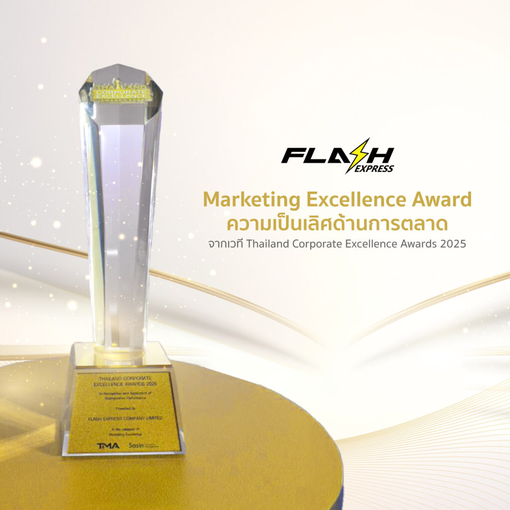 บริษัท แฟลช เอ็กซ์เพรส จำกัด โดยนางสาว ปรินทร์ทิพย์ อิสริยเมธา ผู้ช่วยรองกรรมการผู้อำนวยการสื่อสารองค์กร และรัฐกิจสัมพันธ์ กลุ่มธุรกิจแฟลช เป็นผู้แทนบริษัทฯ รับมอบรางวัลระดับ Distinguished ในสาขา “Marketing Excellence Award” หรือความเป็นเลิศด้านการตลาด จากโครงการรางวัลพระราชทาน Thailand Corporate Excellence Awards 2025 การได้รับรางวัลในครั้งนี้ ถือเป็นการตอกย้ำความมุ่งมั่นในการให้บริการตลอด 7 ปีที่ผ่านมา ที่เติบโตมาพร้อมกับความทุ่มเทของทีมงาน ความร่วมมือกับพาร์ทเนอร์ และความไว้วางใจจากลูกค้า